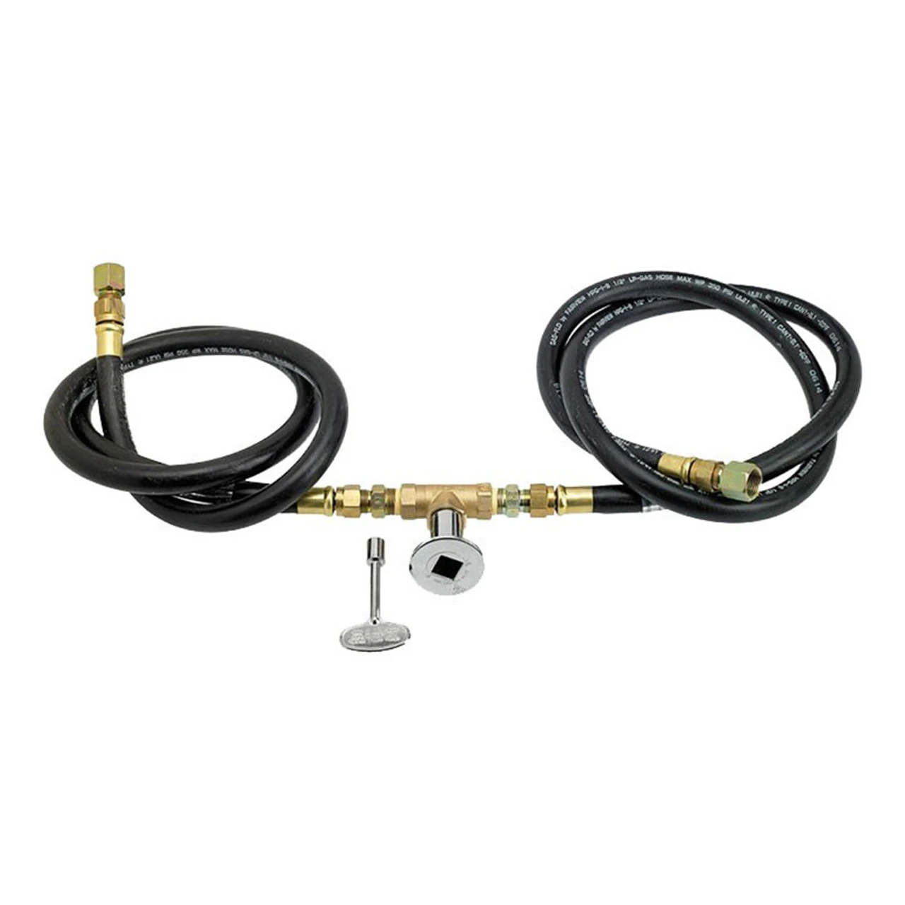 Fire Pit Connection Accessories – including gas hose (2″ and 5″), key valve, chrome key valve, key valve, key and cover plate.