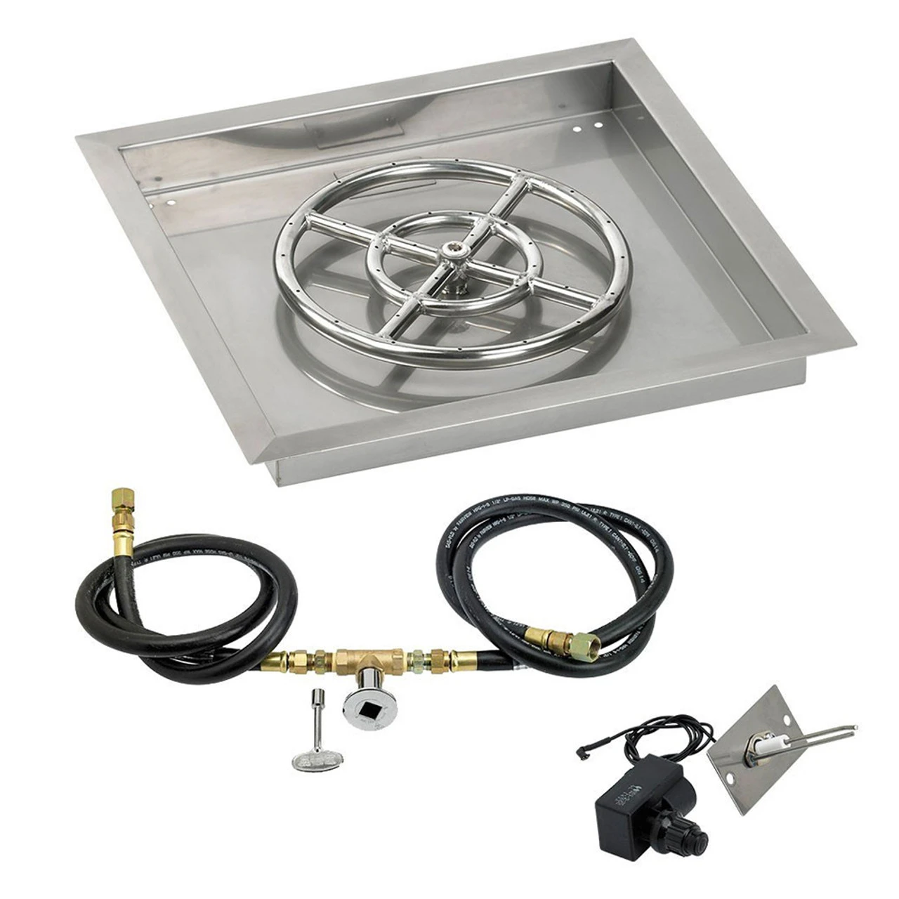 18″ Square Drop-In Pan with Spark Ignition Kit (12″ Fire Pit Ring) Natural Gas – By American Fireglass