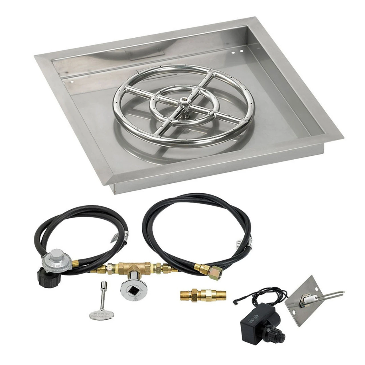 18″ Square Drop-In Pan with Spark Ignition Kit (12″ Fire Pit Ring) Propane – By American Fireglass