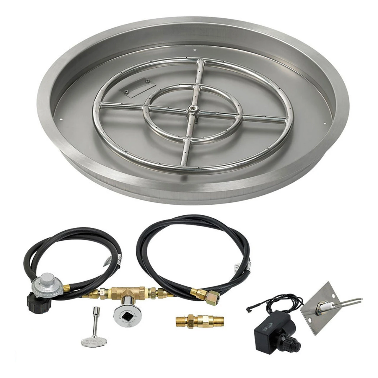 25″ Round Drop-In Pan with Spark Ignition Kit (18″ Fire Pit Ring) – Propane – By American Fireglass
