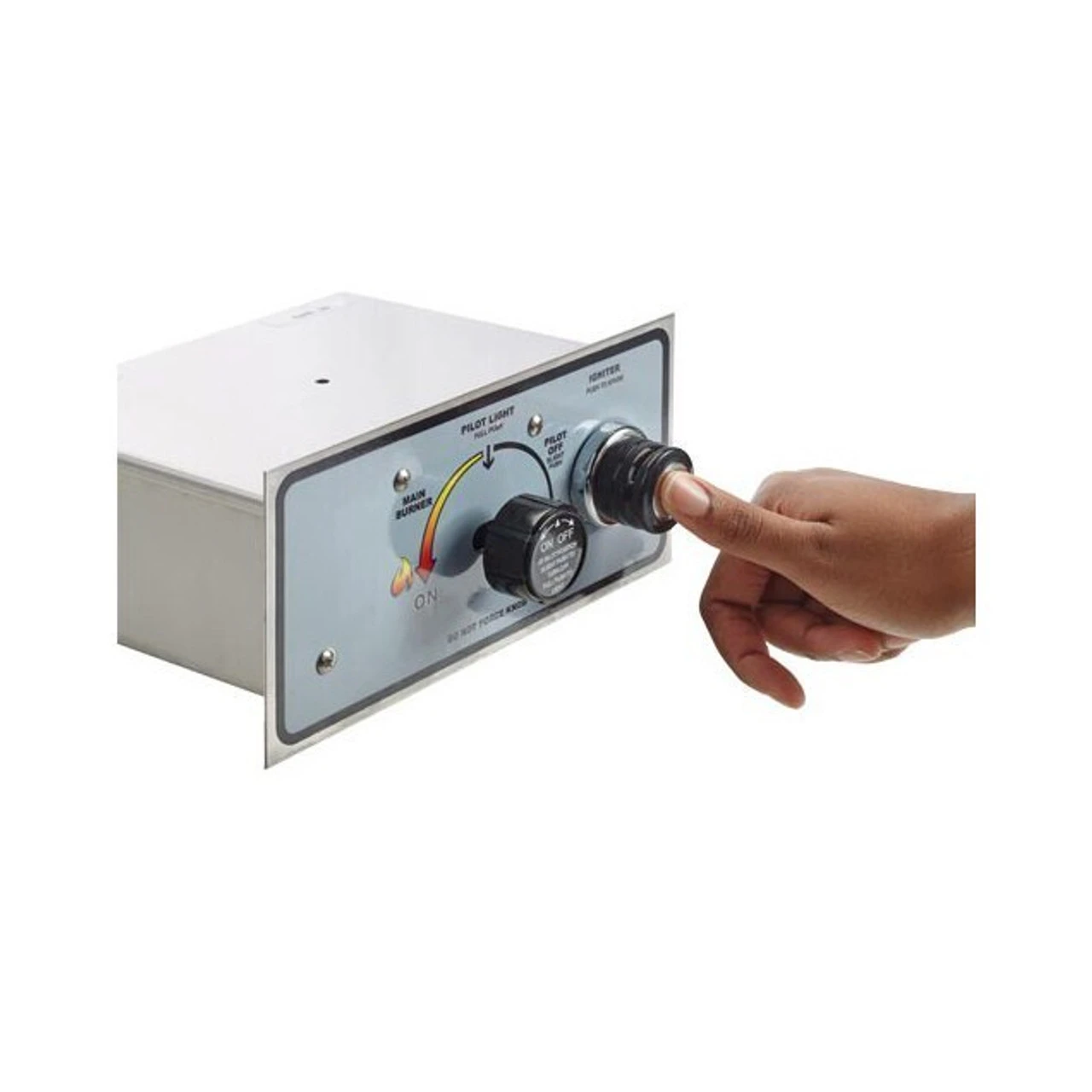 - Complete drop-in fire pit insert utilizes a standing pilot with thermocouple to safely control gas flow, manual spark igniter (AA battery) and safety pilot valve.