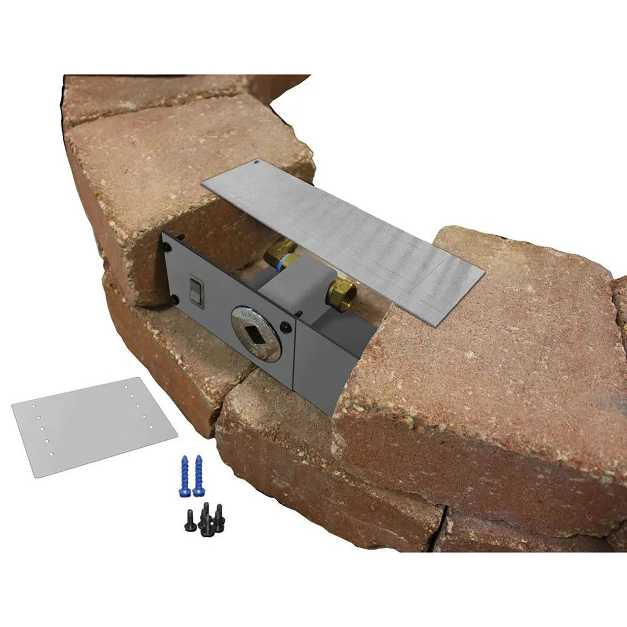Firegear PAVER-CP-AWS Control Panel for AWS Electronic Ignition System provides a premium installation component for use with your Firegear AWS burner system. Designed for use when building fire pit enclosures with SRW block or pavers, this kit provides a convenient mounting option. This package includes a stainless steel paver kit bracket and extender, a 12-inch by 3-inch lintel, screws, fittings, and Tapcon concrete anchors. NOTE: Valve kits and face plates are available separately or as part of an PPB or LOF burner system.
