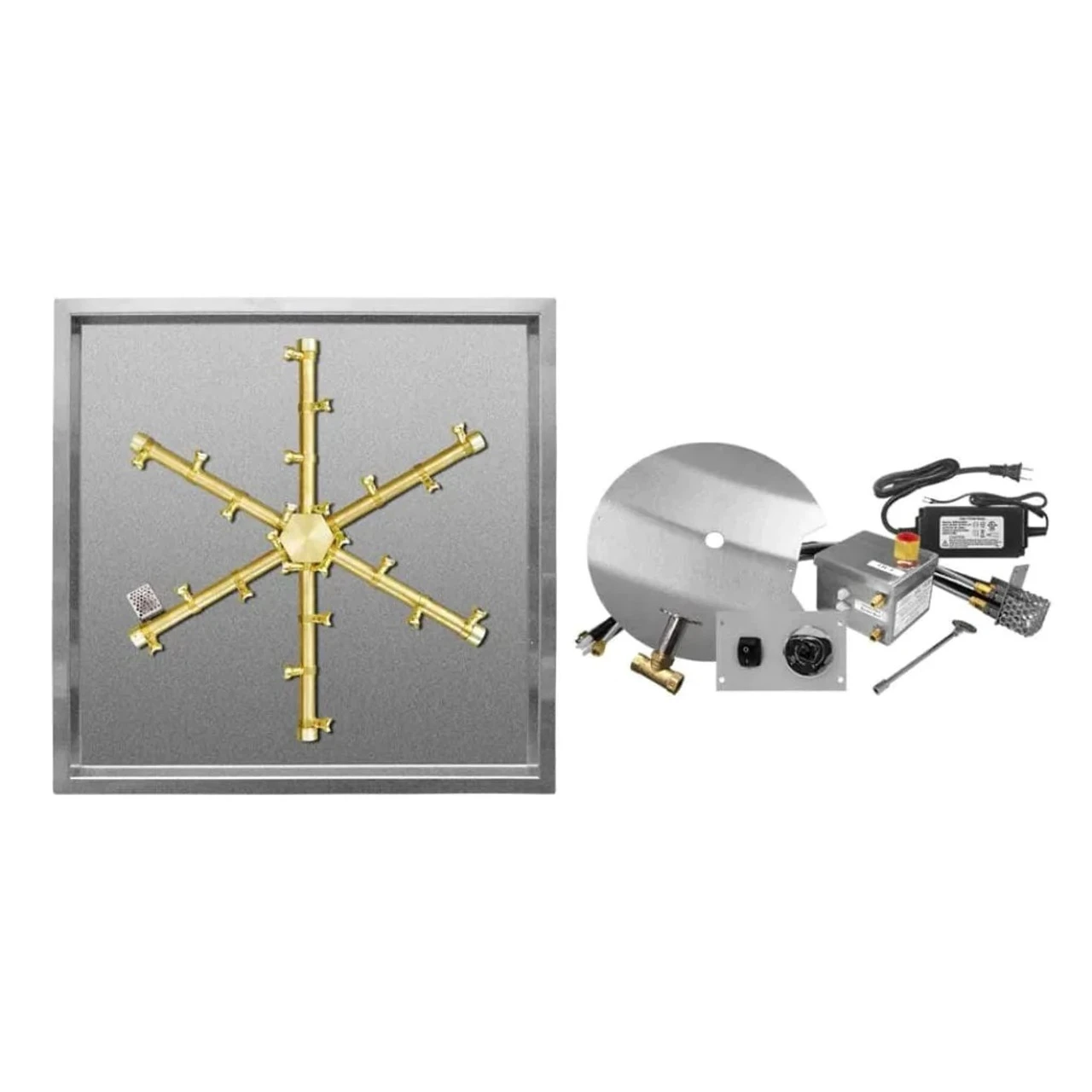 Firegear Pro Electronic Ignition Gas Fire Pit Burner Kit w/ Square Drop-In Pan