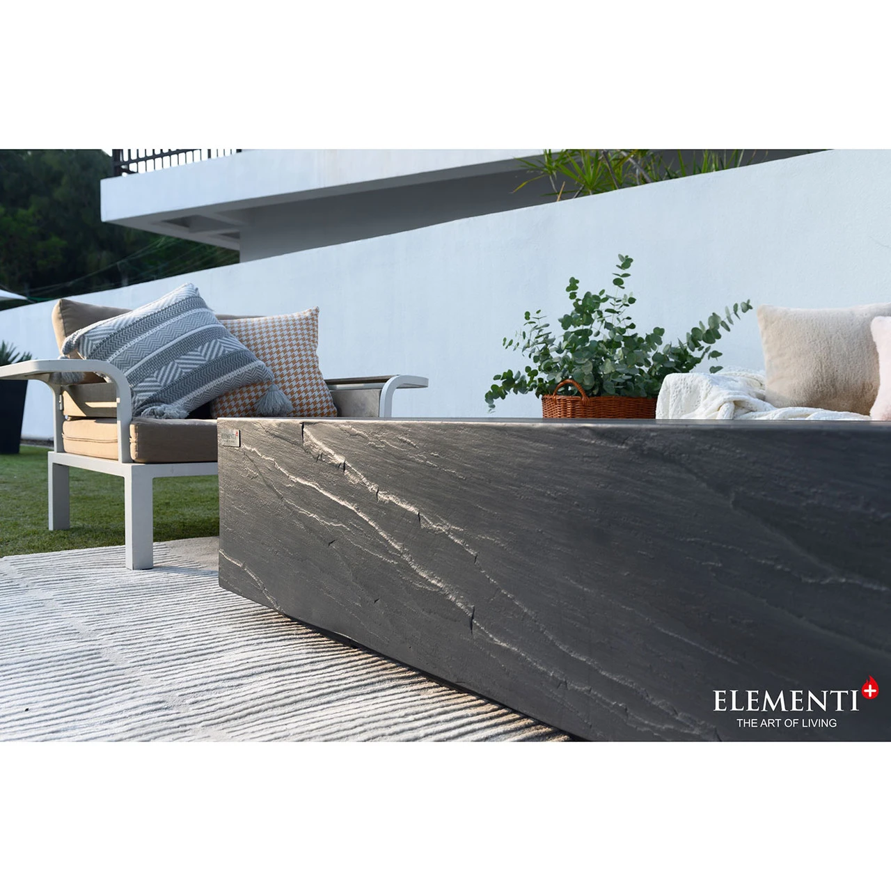 The Cape Town is a new and improved rectangular fire table featured on the Elementi Plus line. The body is handcrafted to precision using glass-fiber reinforced concrete, which proves to be both lightweight and durable against the elements. The burner is constructed of 16-gauge 304 stainless steel that provides a generous BTU output of 60,000, where the warmth of the flames can be felt across the patio or deck. The Cape Town comes in a sleek slate black exclusive to the Elementi Plus line.