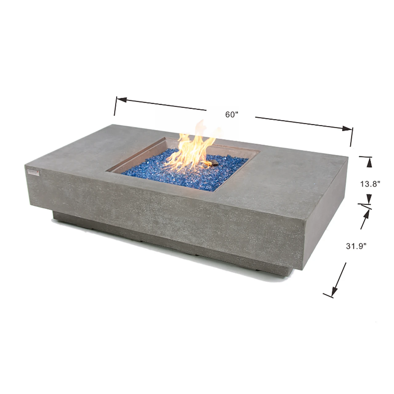 The Monte Carlo is a new and improved rectangular fire table featured on the Elementi Plus line. The body is handcrafted to precision using glass-fiber reinforced concrete, which proves to be both lightweight and durable against the elements. The burner is constructed of 16 gauge 304 stainless steel that provides a generous BTU output of 60,000, where the warmth of the flames can be felt across the patio or deck. The Monte Carlo comes in a familiar light grey color we have seen on the Elementi and Modeno line.