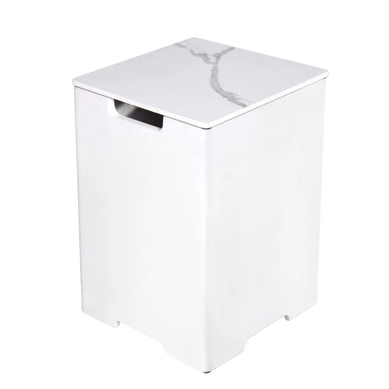 The Elementi Plus Porcelain Square Propane Tank Cover is a stylish and durable way to hide your propane tank. This tank cover pairs beautifully with the Varna Marble Porcelain Fire Table, Carrara Marble Porcelain Fire Table, Binanco Marble Porcelain Fire Table, and the Sofia Marble Porcelain Fire Table. The handles integrated into the tank cover make replacing the tank easy.
