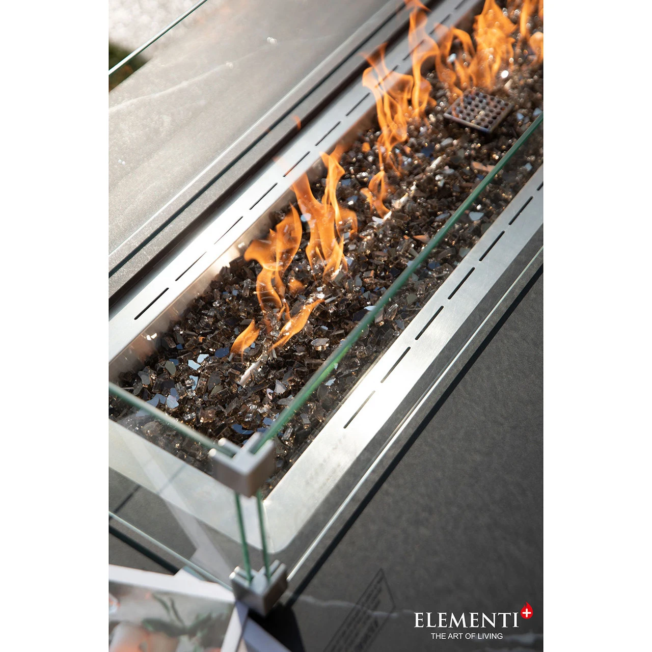 The Varna is a new and improved rectangular fire table featured on the Elementi Plus line. This unit is carefully handcrafted from a metal frame base, with precision sculpting on the marble porcelain exterior. The burner is constructed of 16-gauge 304 stainless steel that provides a generous BTU output of 60,000, where the warmth of the flames can be felt across the patio or deck. The Varna comes in a Bulgaria Black color that provides a luxurious feel in your back yard.