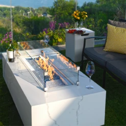 Elementi Plus Carrara Marble Porcelain Fire Table