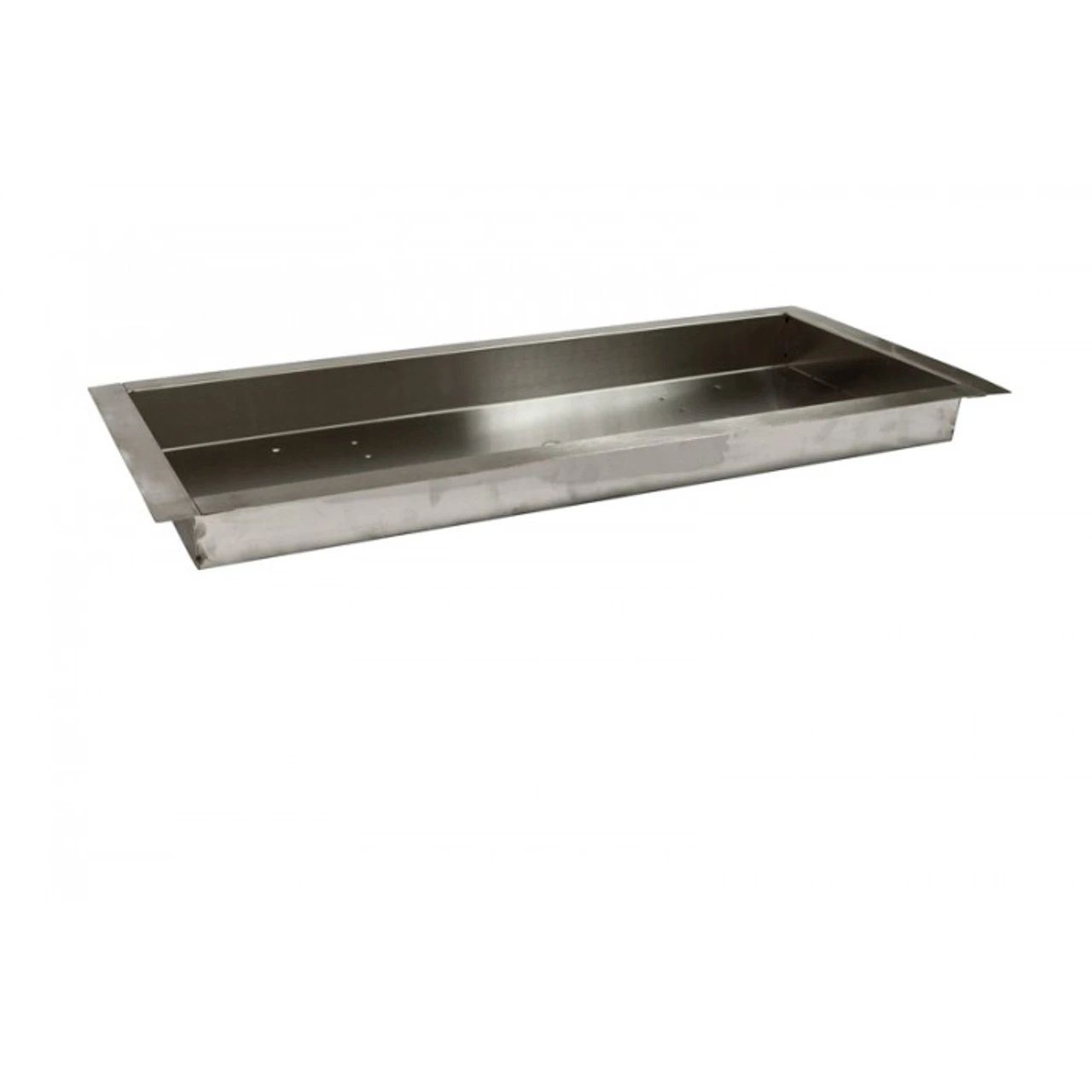 All of HPC’s burner pans are made from high quality stainless steel to ensure quality and longevity. These rectangle bowl burner pans feature weep holes to assist water drainage and reduce risk of burner or system damage. These bowl pans measure 2-1/2″ deep, with a 1-3/8″ rim around the top; the other measurements listed indicate Inner Diameter of pan; this pan also has a 7/8″ through hole in the center for the gas line.