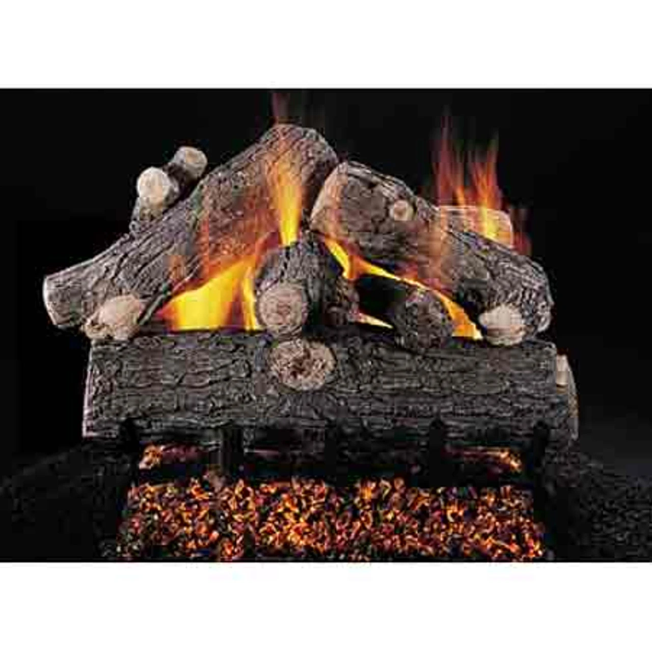 Prestige Oak (PR) – Heavy bark logs with straight one piece front log. Full appearance for tall openings and larger fireplaces.