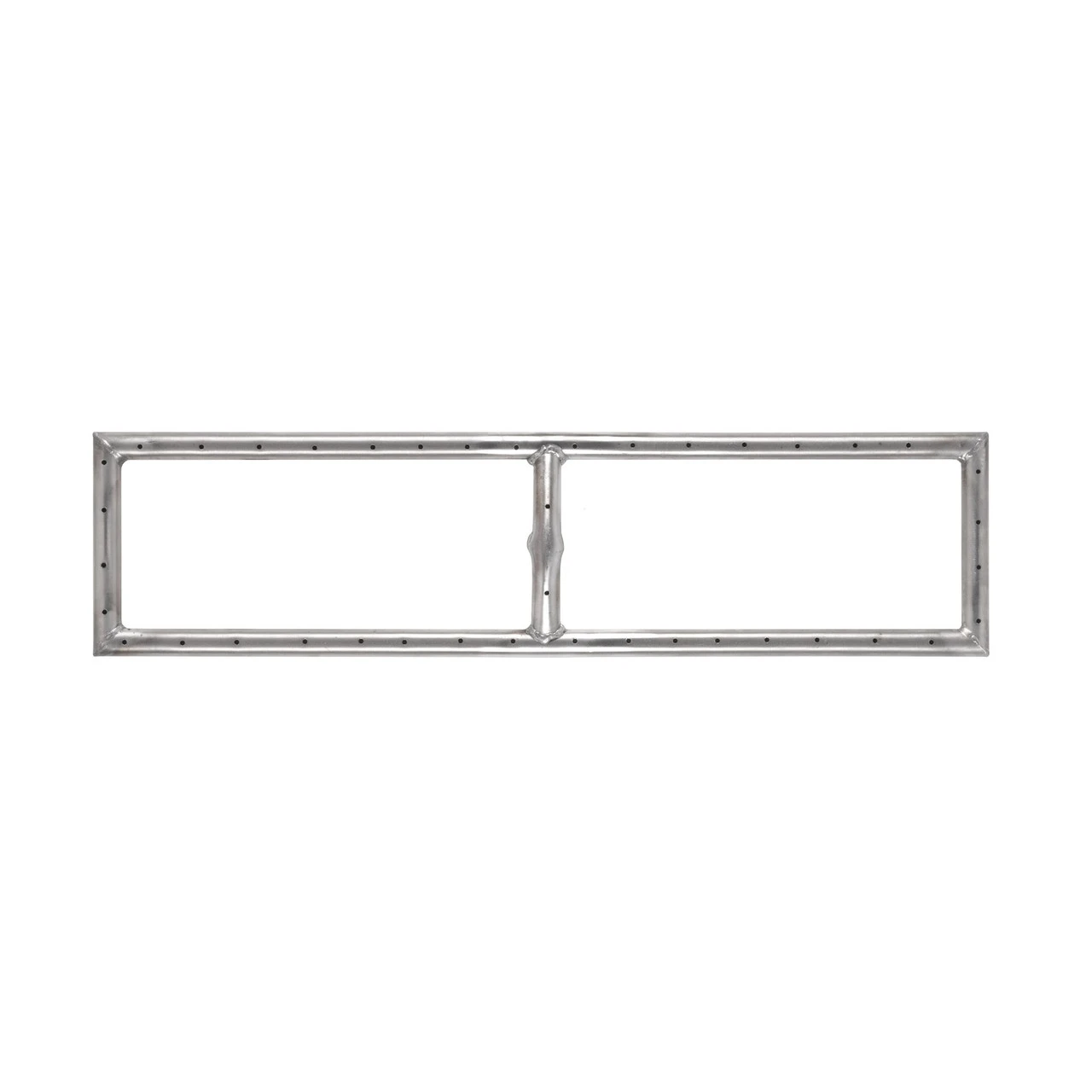 The Outdoor Plus Stainless Steel Rectangle Gas Fire Pit Burner offers a premium fire pit burner alternative for your perfect patio. The rectangle fire pit burner is made from 304 stainless steel to ensure durability and longevity while the drilled holes provide consistent, tall flames that your friends and family can enjoy for years to come. The rectangular burner goes well with any new or existing rectangle-shaped fire pit and offers 13 different sizes ranging from 6×12-inches to 12×72-inches, while the raised gas inlets help prevent water from entering your gas line. With a BTU capacity ranging from 90,000 to 260,000, this versatile burner ensures a strong, warm flame and is suited for natural gas or propane application.
